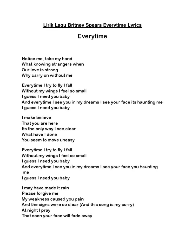 Lyrics Indonesia.. Everytime Britney Spears Lyrics are a subject that is being searched for and favored by netizens these days. You can Get the Everytime Britney Spears Lyrics here. Save all royalty-free images. Britney Spears - Everytime + Lyrics, Britney Spears - Everytime + Lyrics..